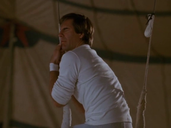 November 18, 1958: Sam leaps in to find himself hanging upside down on a swinging trapeze in a circus big top. A young woman holding onto another trapeze tells Sam not to mess up this time, then swings herself toward him, turning somersaults in the air as she falls toward his outstretched hands. Sam tries to catch her but fails, and she falls into a safety net a few feet above the ground.