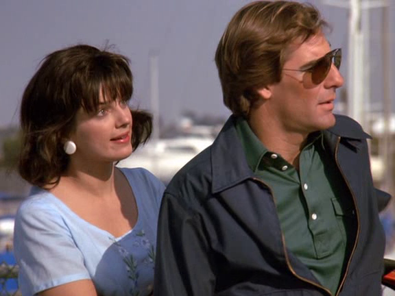 A young, pretty woman cries as she tries to fix a flat. A stranger comes up and tries to help her out by changing the tire. The woman is Beth Calavicci (played by Susan Diol) and he is Dirk Simon (played by Norman Large). Meanwhile, Sam and Skaggs drive toward the marina. Skaggs questions how Sam knows that a woman he's never met, Beth, will meet a lawyer as she tries to change a flat tire. They come upon Beth and Dirk, and Sam takes over changing the tire, while Skaggs “questions” Dirk. Sam startles Beth by knowing her name and makes her think Dirk is under investigation. Skaggs gives the same impression to Dirk about Beth.